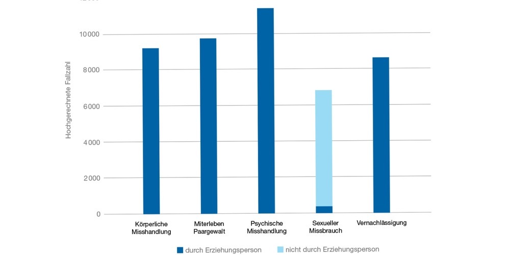 Zwei von drei Minderjährigen (69 %) berichten, mindestens eine Form von Gewalterfahrung erlebt zu haben. Besonders häufig sind psychische Misshandlung (42 %), gefolgt von Vernachlässigung, miterlebter Paargewalt und körperlicher Misshandlung (je 32–36 %).