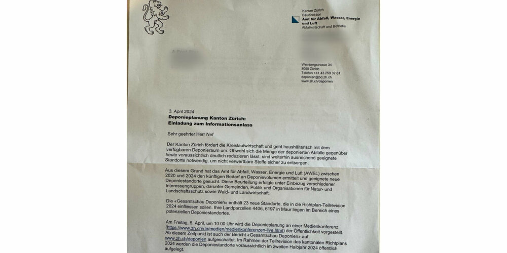 Sechs Hektaren seines Landes sind als «geeigneter neuer Deponiestandort» eingestuft worden (wir berichteten). Mit anderen Worten: Auf Nefs Land, wo normalerweise die Kühe weiden, könnte schon bald Müll entsorgt werden. Der Bauer schüttelt immer wieder den Kopf, während er auf das Schreiben des kantonalen Amts für Abfall, Wasser, Energie und Luft schaut. «Wenn das geschieht, können wir den Betrieb schliessen.»